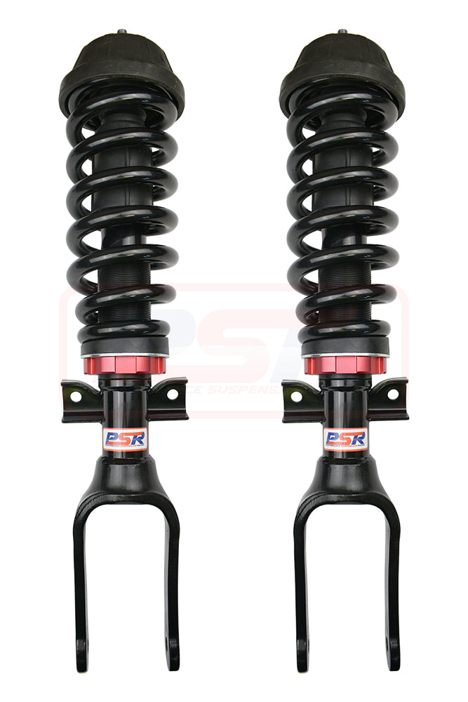This kit contains our PSR TTG 2-2.5" height adjustable struts all pre-assembled with PSR coil springs and HD strut tops.