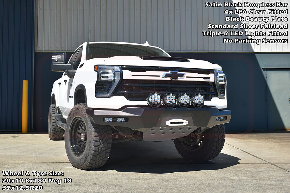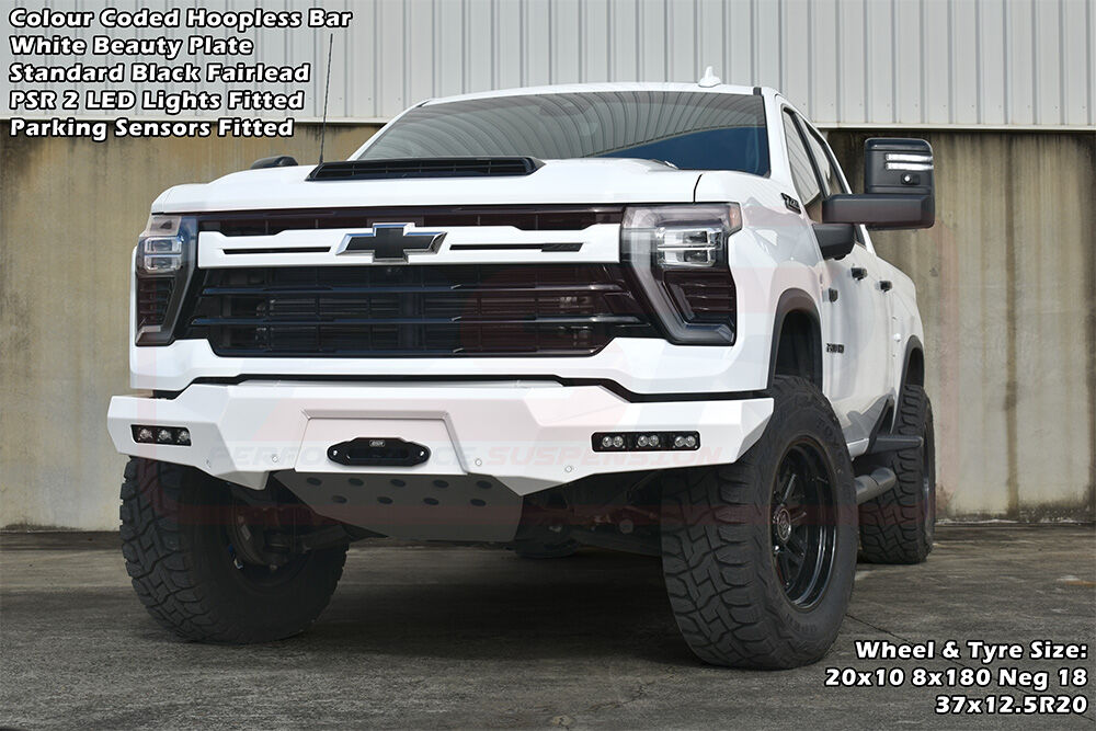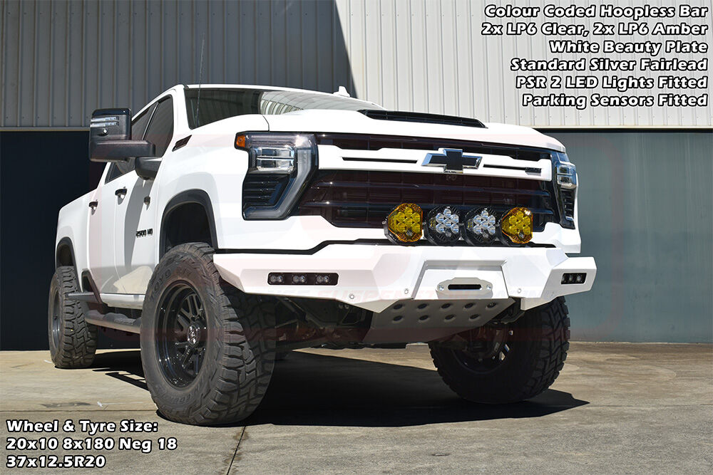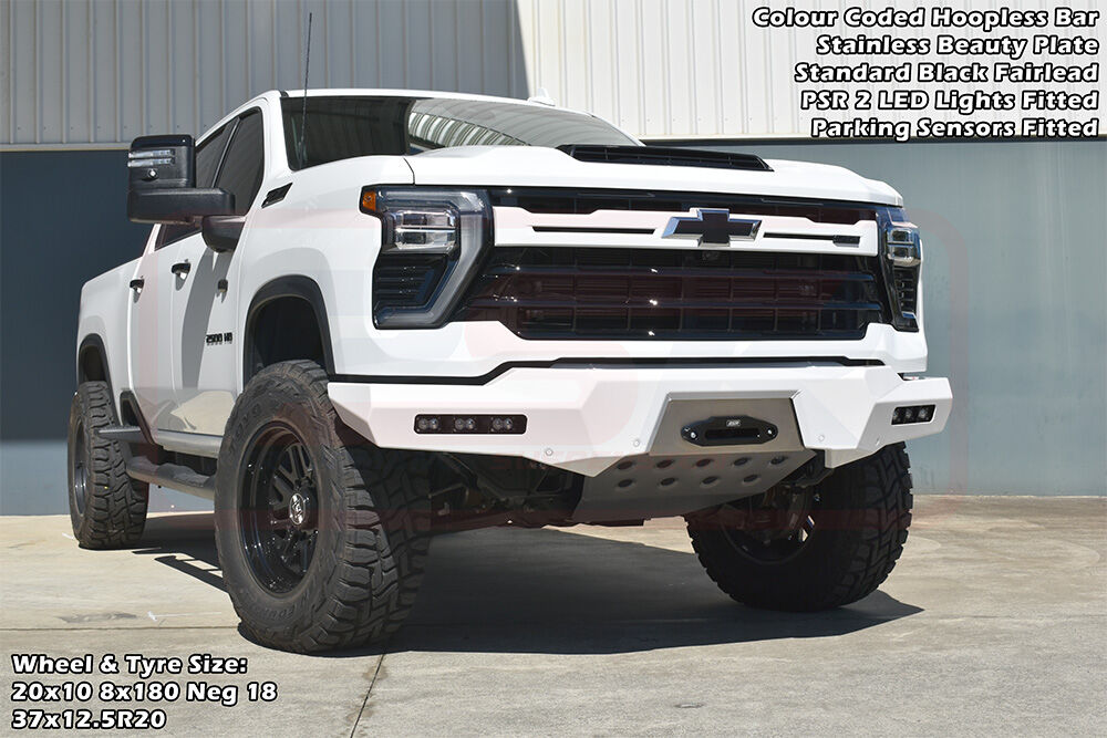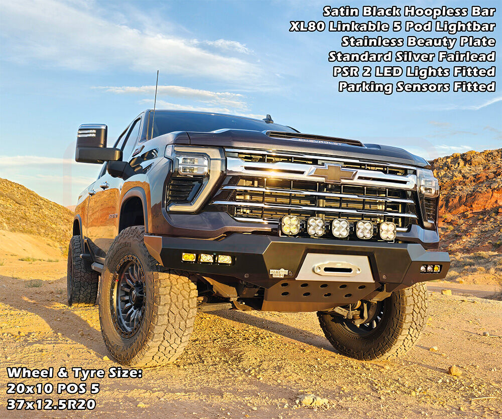 PSR's Chevrolet Silverado 2024-On 2500-3500 bar is available in multiple variations, Hoopless or Sheet Metal Hoop, or light the way with various lighting options to change the look of the bar!