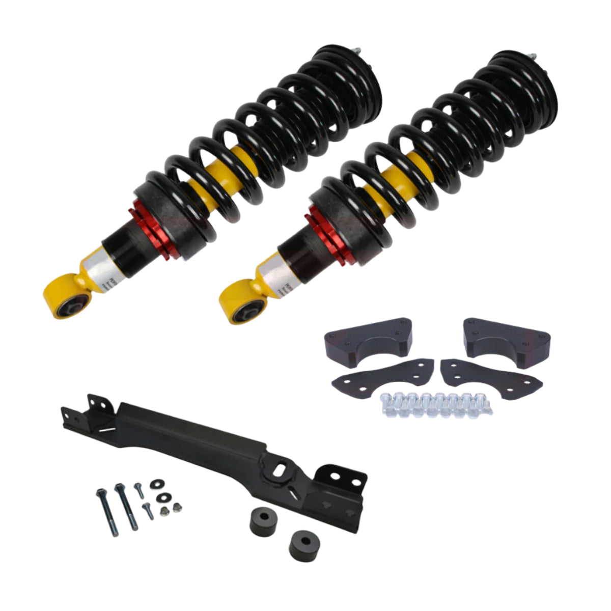 This system sits at 4" front and includes our PSR diff drop kit, PSR ball joint spacer, PSR spec Bilstein 3 - 4" height adjustable struts all pre-assembled with Kings coil springs.