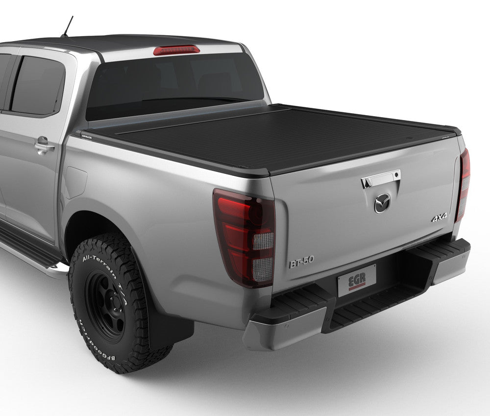 Upgrade your Mazda BT-50 with the EGR RollTrac Electric E3 — precision-engineered for performance, protection and premium style. Built in Australia for Aussie conditions, this electric roller tonneau cover features interlocking aluminium slats finished in a UV-stable black powder-coat, providing a sleek look and strong defence against the elements.