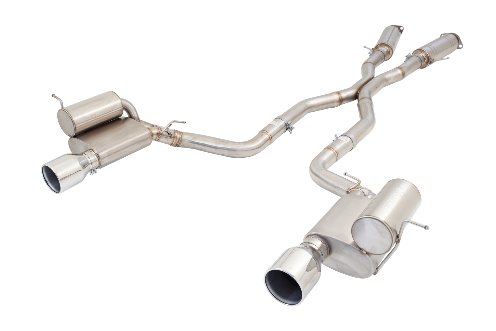 Our twin 3″ 304 stainless steel system consists of two resonators in the centre, X pipe and dual rear mufflers assisted by drone canisters with 4″ polished tips. We believe this to be the best combination to really wake up these awesome vehicles, while retaining great daily drivability.