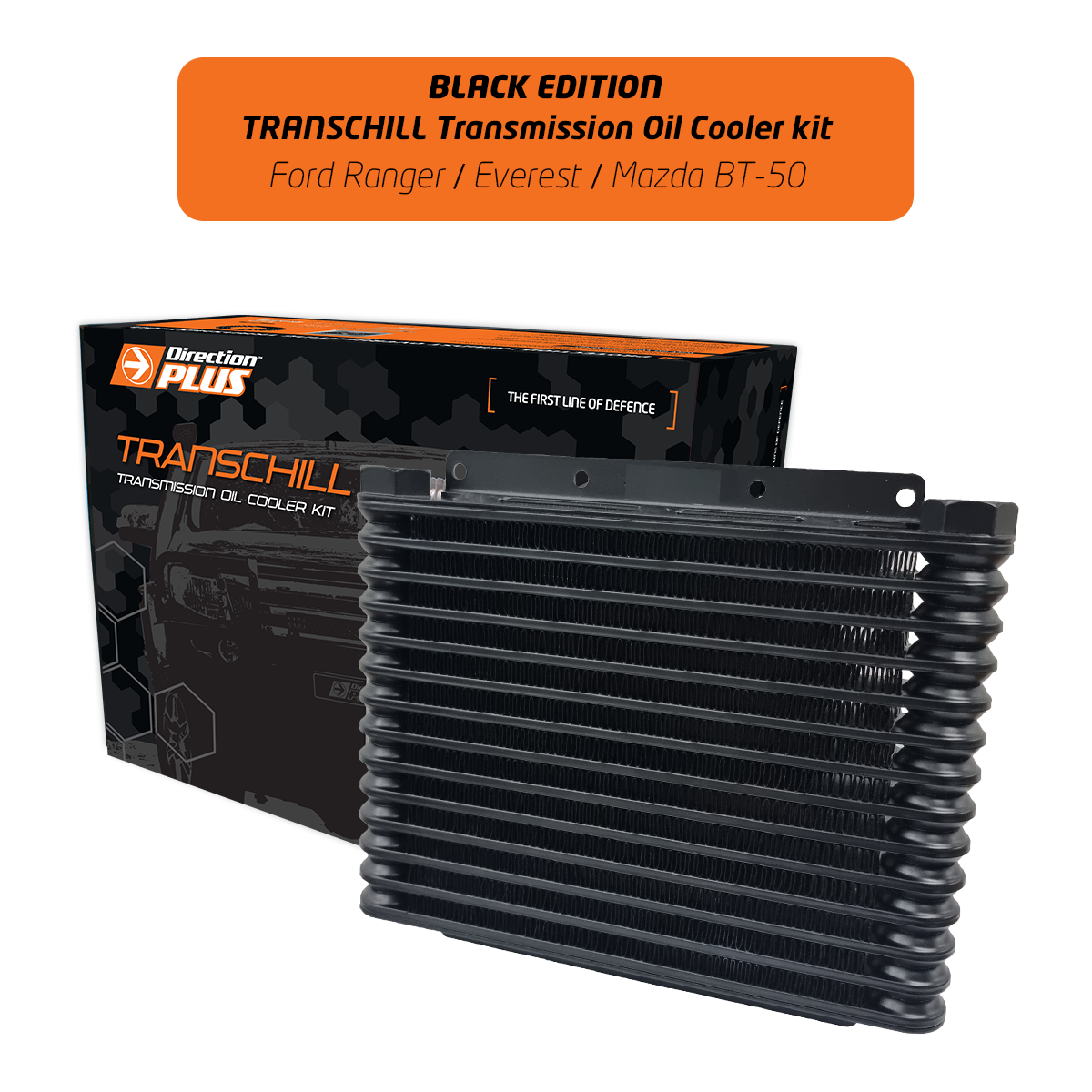 The NEW 32mm 14 row TransChill Arctic Black Transmission cooler kit TCB621DPK fits Ford Ranger, Everest and Mazda BT-50 P5AT (3.2L 5cyl) models. It is designed specifically to reduce excessive transmission heat caused by towing, carrying loads and driving in sand, snow, off-road or hot conditions.