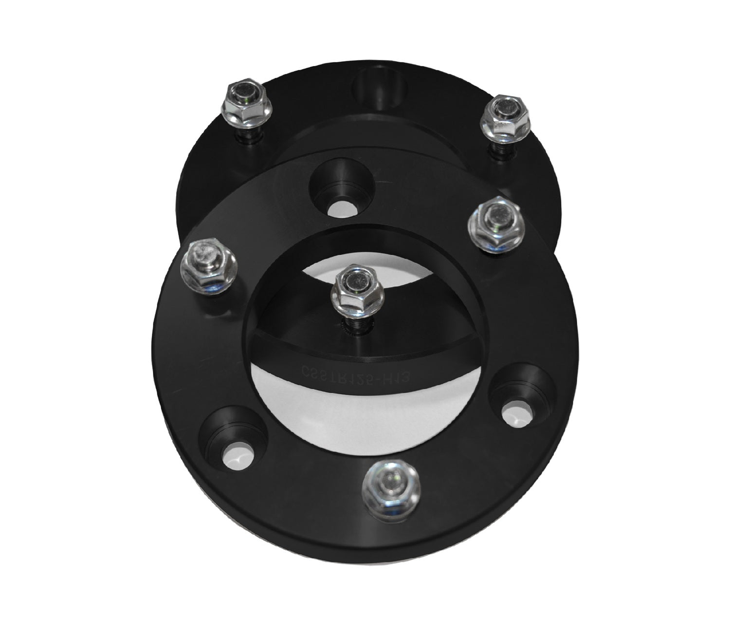 Installation of a coil strut spacer is an effective method to elevate the front ride height on vehicles equipped with strut front suspension systems. These spacers are engineered to securely attach to the top of the strut assembly, ensuring that full suspension articulation is maintained, which means they do not interfere with shock travel.