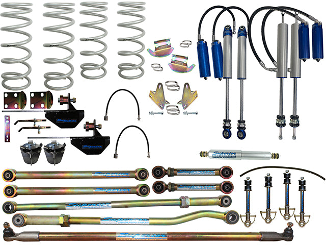 This suspension system features the top of the range Superior 2.5 Remote Reservoir Adjustable Shock absorbers and also our heavy duty Superior Drop Boxes.