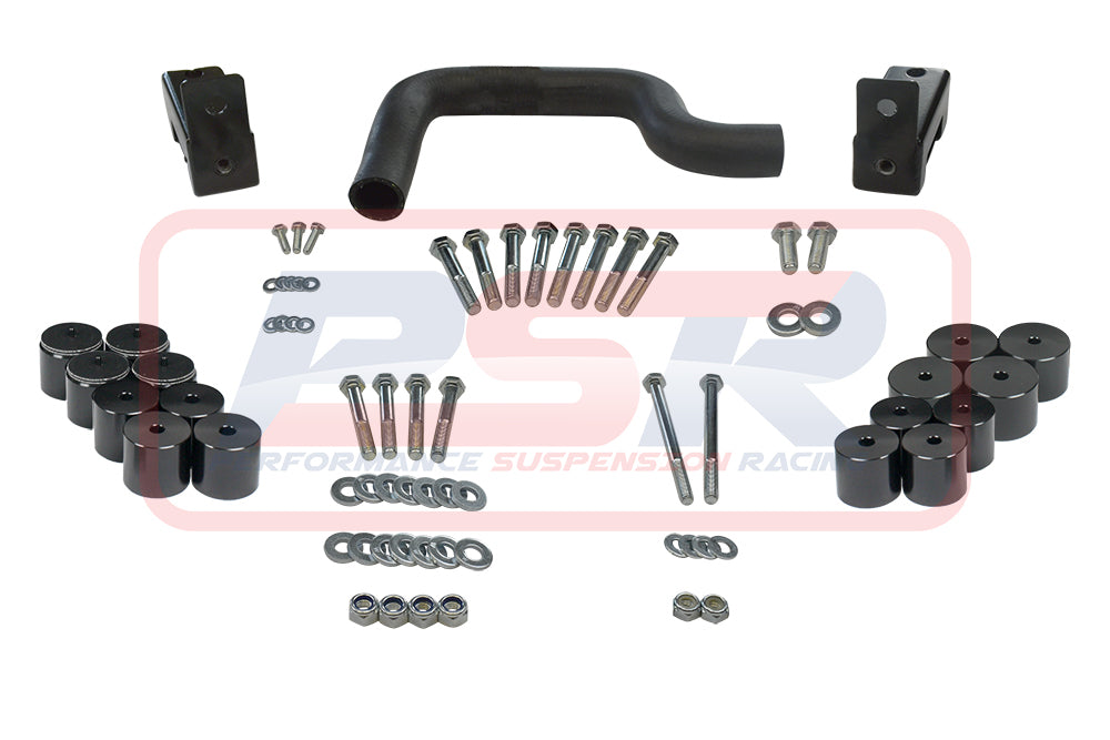 PSR offers a complete bolt-in 2" body lift kit for a single or space cab variation with a tub. Kit is supplied with high tensile bolts and blocks to the size or larger than OE body mounts to be compliant. Kit is complete with no additional items to purchase to body lift your Mazda BT50 / PK Ranger. Blocks are machined from 6061 T6 Alloy block and anodized black.