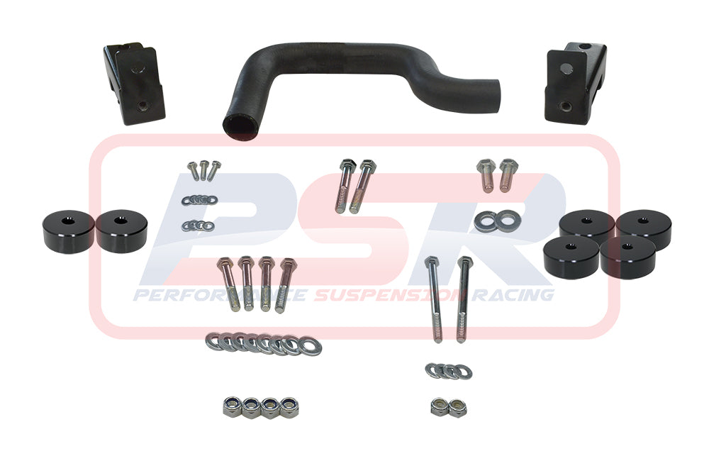 PSR offers a complete bolt-in 1" body lift kit for a single or space cab variation to lift the cab only. Kit is supplied with high tensile bolts and blocks to the size or larger than OE body mounts to be compliant. Kit is complete with no additional items to purchase to body lift your Mazda BT50 or Ford PK Ranger. Blocks are machined from 6061 T6 Alloy block and anodized black.