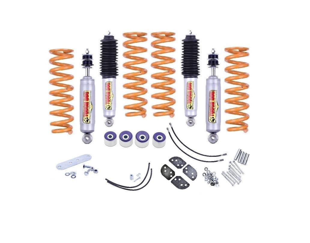 | What’s included? | Front & rear shocks, springs, bush kits, shackles, pins, U-bolts, compliance plate, install, alignment, permits as required. |