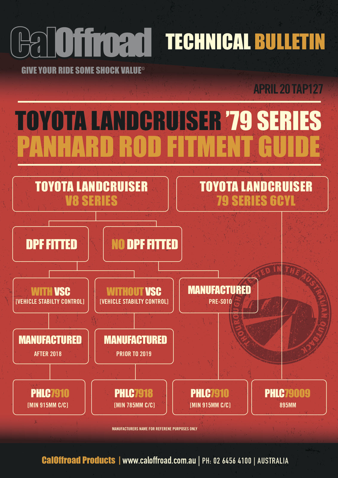 CalOffroad Adjustable Panhard Rods for the 79 series come standard with high flex rubber bushings that offer you minimal noise, vibration & harshness for your offroad and touring adventure, giving them the advantage over brands with polyurethane bushings. CalOffroad Adjustable Panhard Rods are one of the few on the market that are manufactured from high grade solid bar as well as running an increase in the outside diameter to help make it one of the strongest panhards on the market, this is not only important for offroad use but also to reduce flex for greater onroad handling.