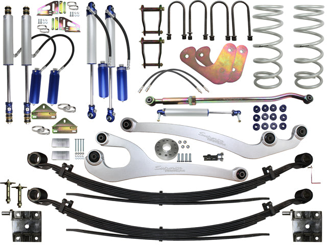 Superior Engineering has put together a "Super Flexy" lift kit Suitable For Toyota LandCruiser 78/79 Series V8 2017 on with Superior Remote Reservoir 2.5 shock absorbers.