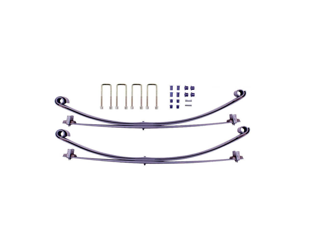 A parabolic spring pack has a minimal number of leafs with the leaf material being tapered.