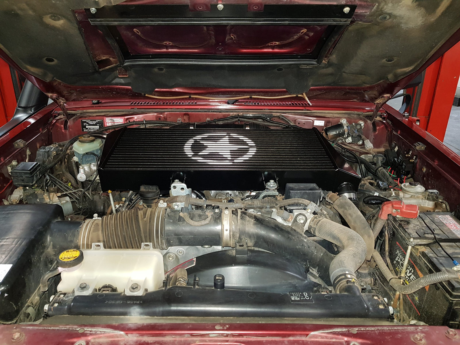 Once back in Adelaide we set about designing a totally new Intercooler! Starting with a custom 660mm x300mm x76 tube and fin core, utilizing our proven sheet metal tanks and fitting twin 10inch spal thermo fans to the underside of the Intercooler! The cooler was fitted to the same vehicle and tested in similar conditions. The testing was carried out in the Flinders Ranges. Fuel consumption figures were down to 16L/100km on the highway with EGT’s at 325c and 14.5L/100km with EGT’s at 450c in the low speed high load sections. Proving the newly designed cooler to be much more effective, not only on the highway cruise but in the low speed, high load sections too!